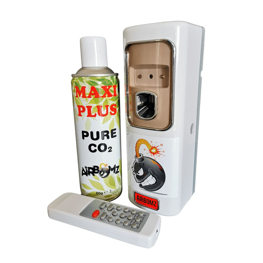 AirBomz CO2 è uno strumento innovativo per la coltivazione indoor. E’ il primo erogatore al mondo di CO2 telecomandato con sensore di luce incorporato. Progettato per grow box medio-piccole, immette costantemente CO2 a intervalli prestabiliti mantenendo i valori ottimali di 1200 PPM.
