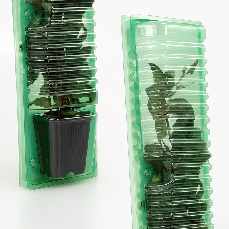 Blister per Trasporto e Spedizione di Talee 1 Vaso 7x7x8 cm è la soluzione ideale per spedire o trasportare in sicurezza una singola pianta o talea con vaso standard. Realizzato in plastica PET riciclata al 100%, offre massima protezione contro urti, sbalzi di temperatura e perdita di umidità durante il trasporto.