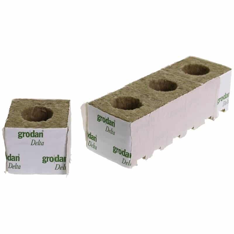 Cubo lana di roccia 7.5 x 7.5cm con foro grande centrale per ospitare i cubetti da 3.6cm.