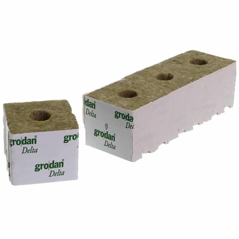 Cubo lana di roccia 7.5 x 7.5cm con foro piccolo centrale per ospitare i cubetti da 2.5cm.
