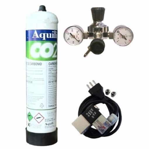 Kit professionale per l’erogazione di CO2 composto da erogatore, bombola e manometro.