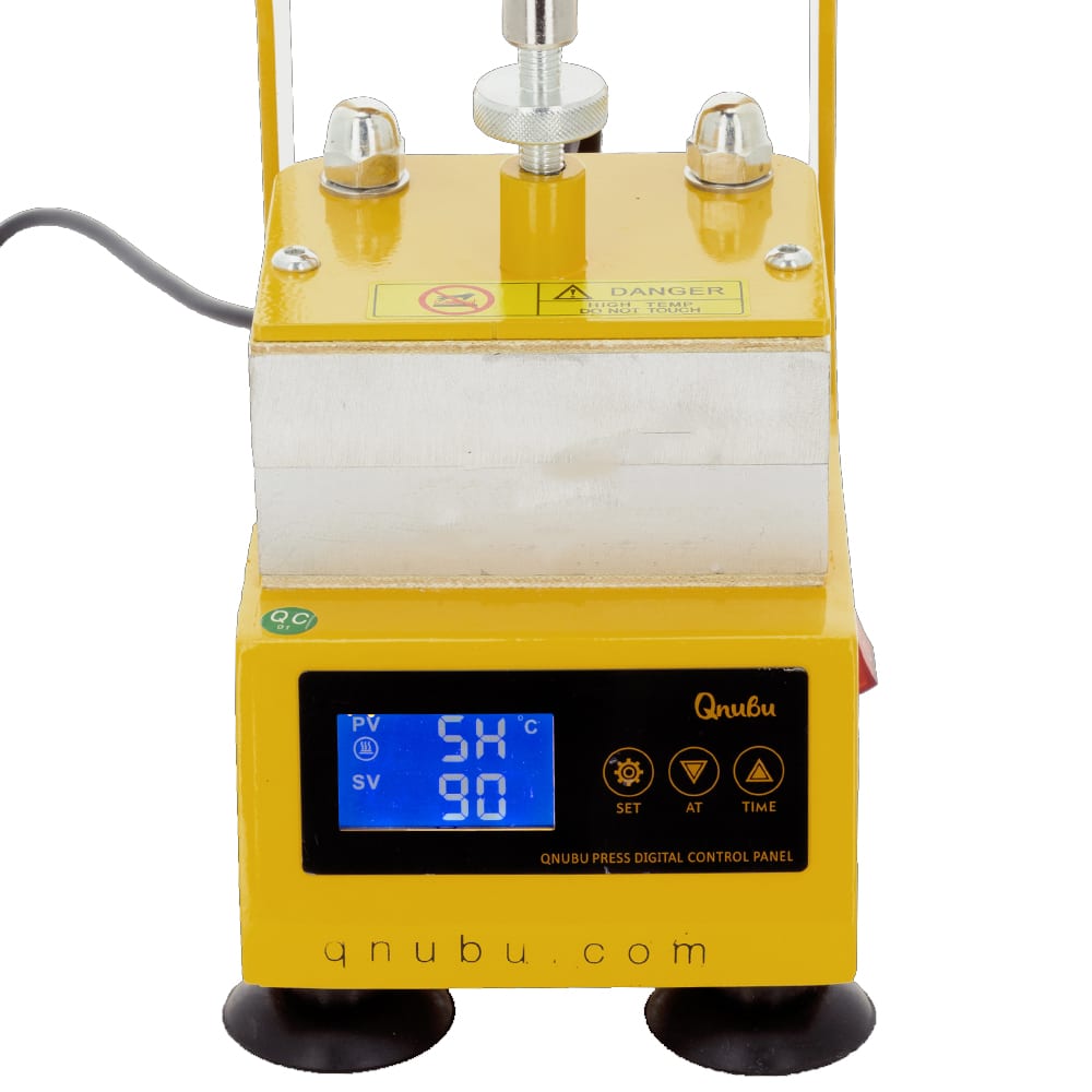 Pressa Manuale per Rosin Kompact 2.0 della Qnubu per estrazioni di olii e resine senza l’utilizzo di solventi, ma semplicemente tramite pressione e riscaldamento.