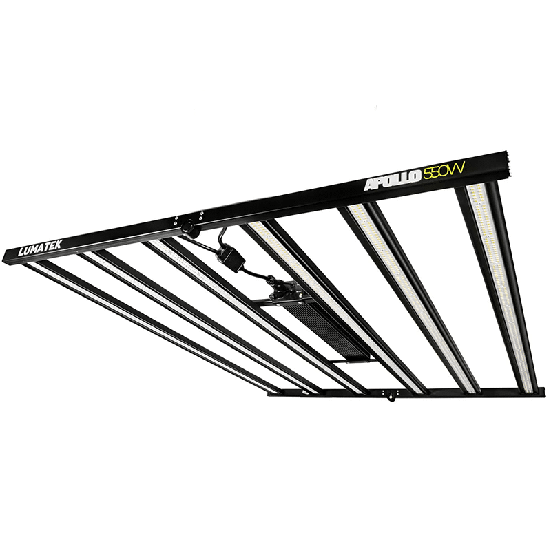 Lo spettro completo bilanciato, composto da LED bianchi e rosso profondo, rende il Lumatek Apollo 550W LED ideale sia per la fase vegetativa che per la fioritura. Con un’efficacia reale di 2,8 μmol/J e un PPF di 1540 μmol/s, assicura un’illuminazione intensa e uniforme, migliorando la qualità e la quantità della produzione.