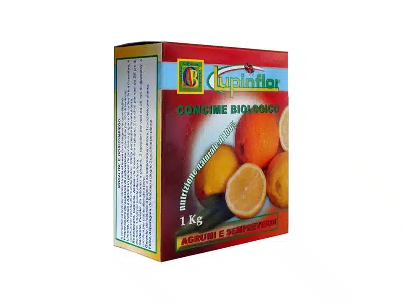 Lupinflor è un concime vegetale biologico per agrumi in genere, allevati in vaso. Lupinflor concima, cura, mantiene le piante di agrumi ed è composto da panello di lupino brillato. L’alto contenuto di sostanza organica di origine poteica, agisce come attivatore della microflora utile, aumenta l’umificazione riducendo le perdite per lisciviazione. Prodotto stabilizzato a scaglie, privo di odori sgradevoli.