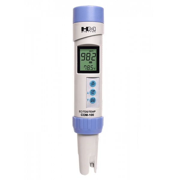 Il misuratore di EC stagno HM Digital COM 100 è un avanzato conduttivimetro portatile completamente impermeabile e galleggiante per la misura della conducibilità (EC – µS), dei solidi totali disciolti (TDS) e della temperatura.